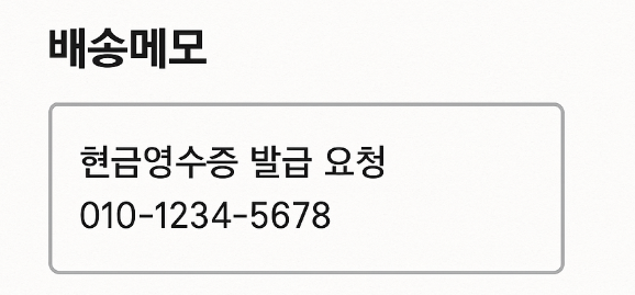 ✔ 예시: "현금영수증 발급 요청 / 휴대폰번호 또는 사업자번호 기재"