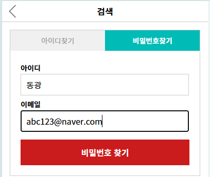 ㅁ 비밀번호 - 아이디 / 이메일 - 비밀번호 찾기 클릭