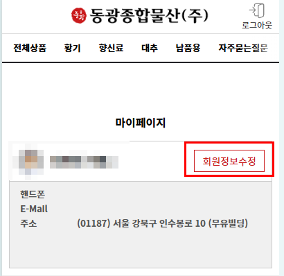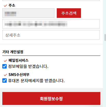 4. 개인정보 변경 > 변경할 정보 입력 후 > 회원정보수정 클릭