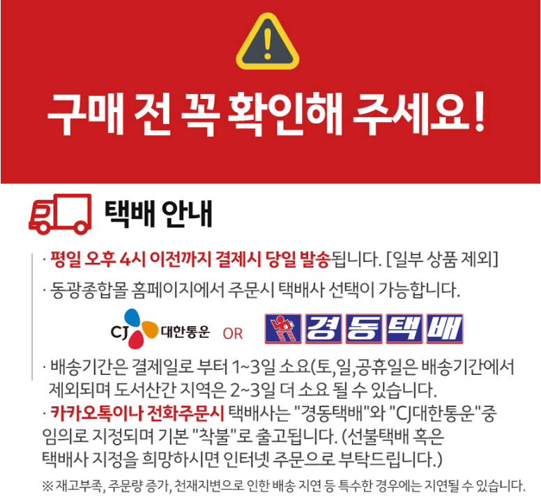 ※ 배송방법 오선택시 별도 안내없이 선택한 배송방법으로 진행됩니다.