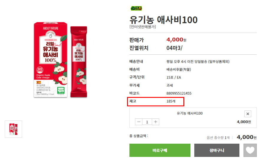 ㄴ상품 상세 페이지에서 재고를 확인할 수 있습니다.