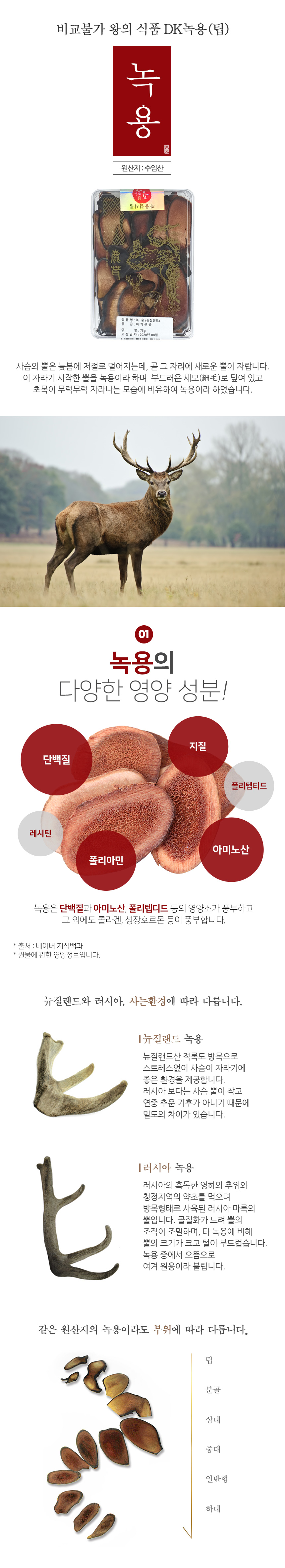 녹용에서 가장 좋은부위 / 팁부분이 잘려서 들어와 구하기가 점점 어려워 판매종료 가능성 있음