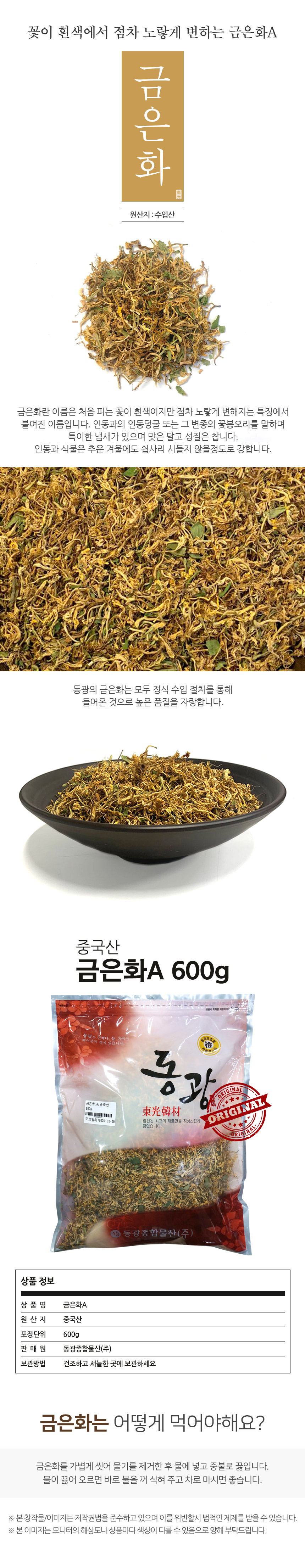 기존제품에 비해 색이 어두움/인동덩쿨의 꽃봉오리&막피기 시작한꽃/맛이 담담하며 약간쓰다