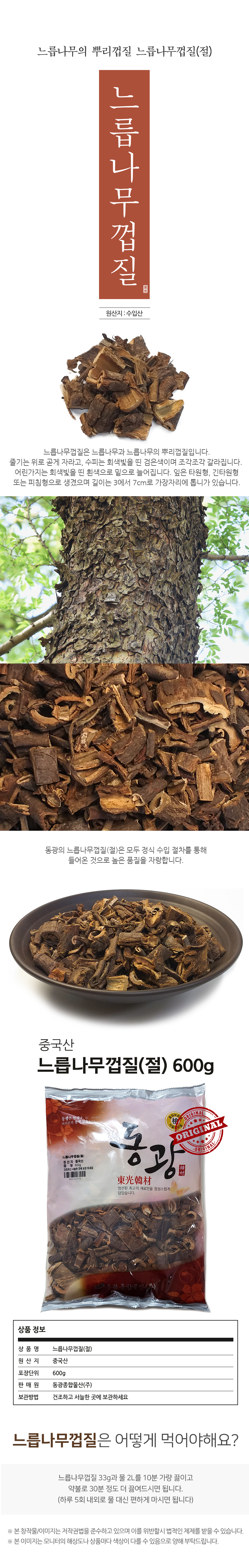 길이 3~4cm정도로 절단 되어있는, 느릅나무의 뿌리 껍질