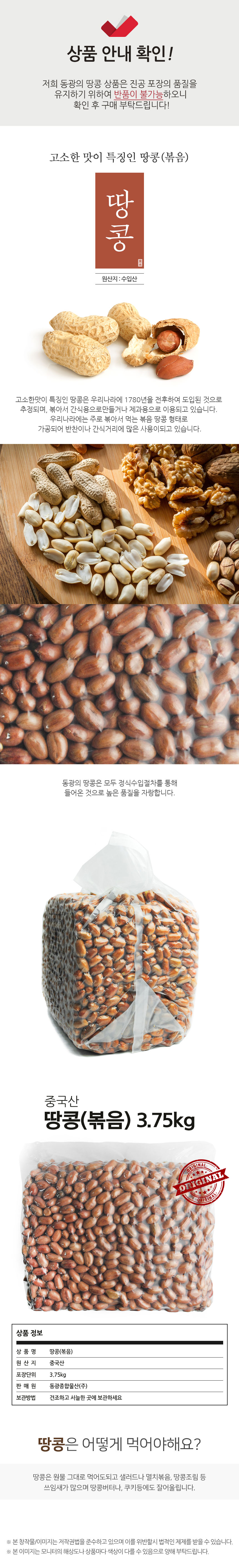 설탕,소금을 첨가하지않고 땅콩자체를 열을 가해 볶은땅콩/배송과정에서 진공상태가 풀릴수 있으나 품질에는 이상없음 카툰박스에 3.75kg*4개 / 진공풀린 제품은 500g으로 포장