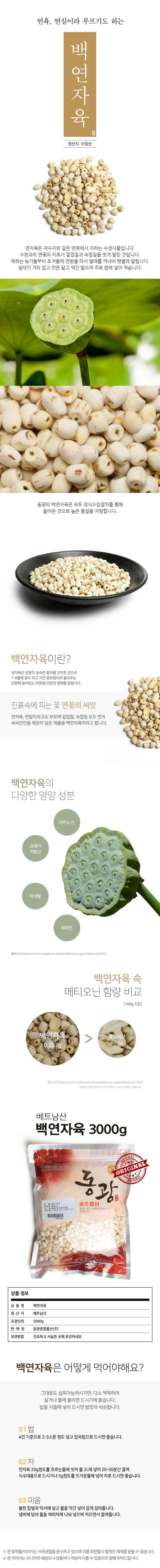 껍질을 깐 연자육, 볶지 않음, 연심은 대부분 제거 됨, 안 쪼갰음(동그란 제품)