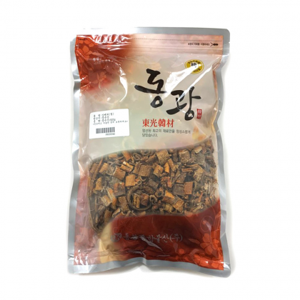 바깥 면은 백색 또는 황갈색을 띠며 뿌리껍질에 붙어 있는 껍질이 황갈색이고 떨어지기 쉬우며 가는 세로주름이 많으며 적갈색을 띤 껍질이 있다