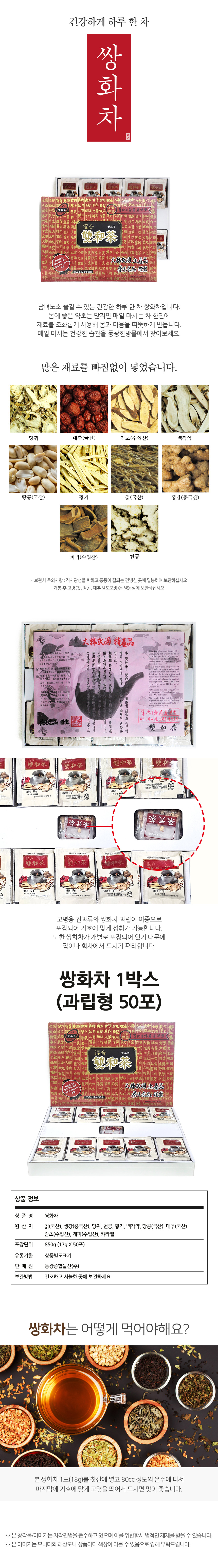 쌍화차 분말 따로, 견과류 따로 포장되어 있음, 큰1박스에 10개.1박스(1개당18gx50개)