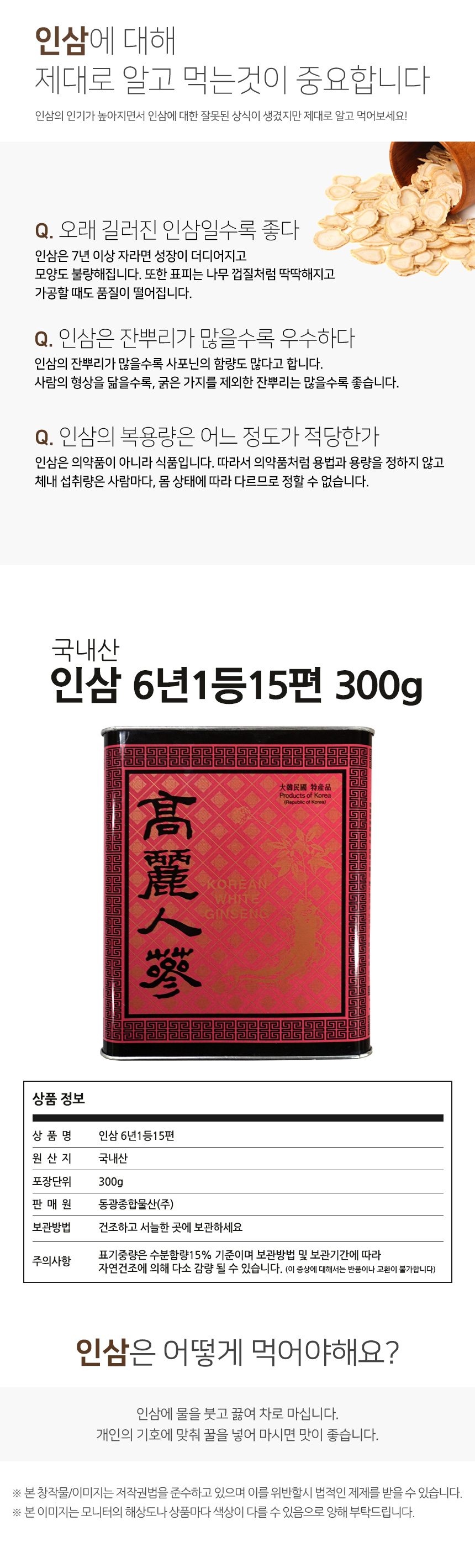 인삼6년근1등15편/국내산