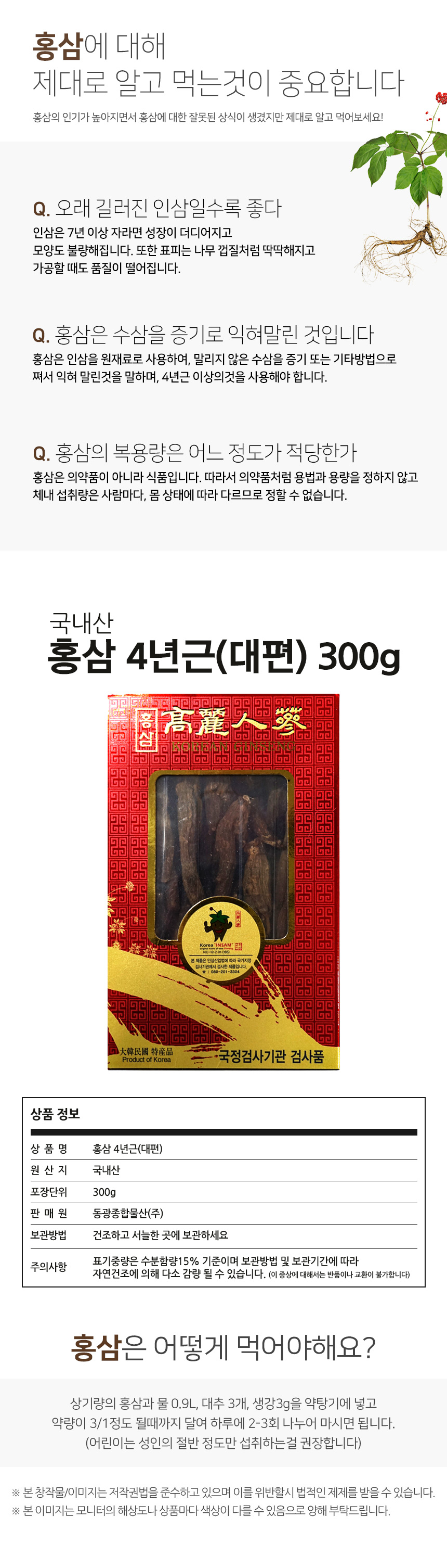 홍삼 4년근대편/국내산