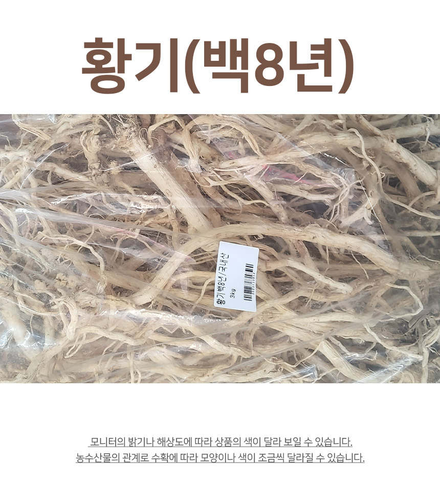 제품이 오래돼고 껍질을 벗긴 제품 황기농사를 짓는 분들이 적어서 소량만 생산돼는 귀한제품
