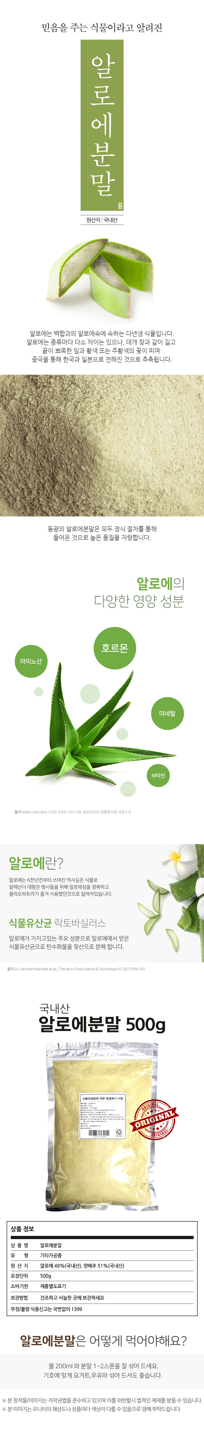 알로에49%, 양배추51% 알로에100% 알로에분말은 기능성식품으로서 본사 소분이 불가함