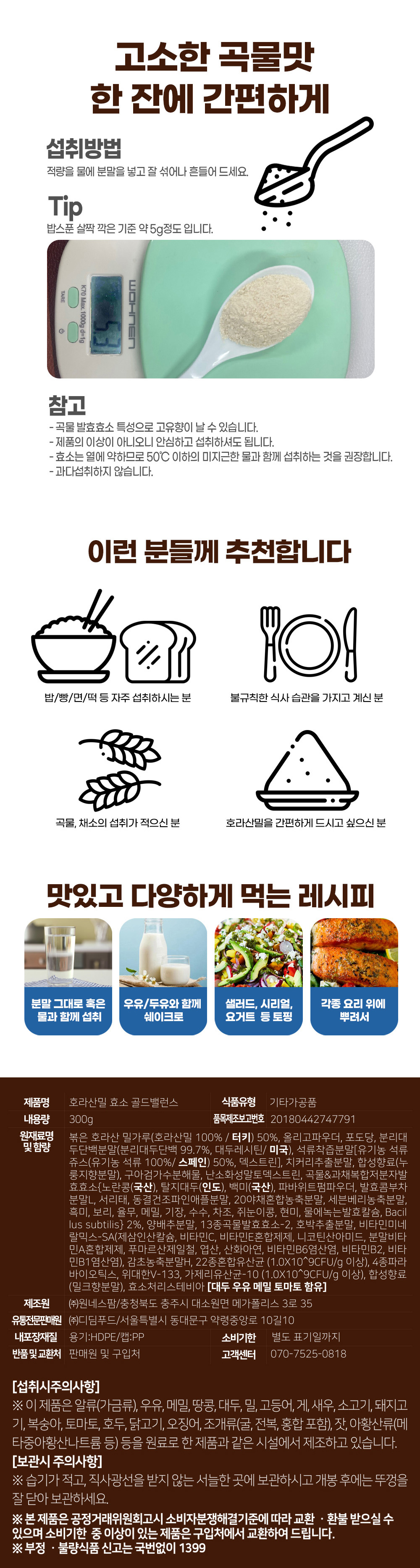 섭취방법은5g정도물에분말을 잘섞어나흔들어드세요*참고 곡물발효효소특성으로고유향이 날수있음 제품의 이상이아니오니안심 하셔도됩니다 효소는 열에 약하므로50`C이하의 미지근한 물로 섭취