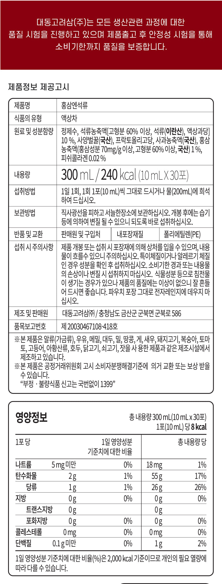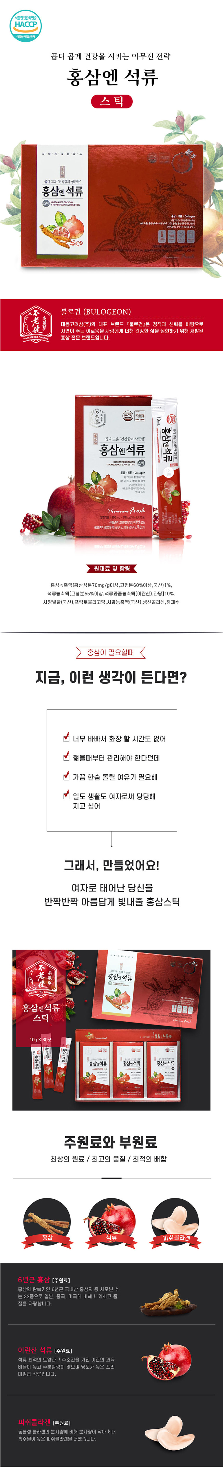 12월초 재입고예정 / 100% 국내산 홍삼 농축액과 석류 농축액 / 콜라겐 등을 함유, 하루 한포 (10ml*30포)