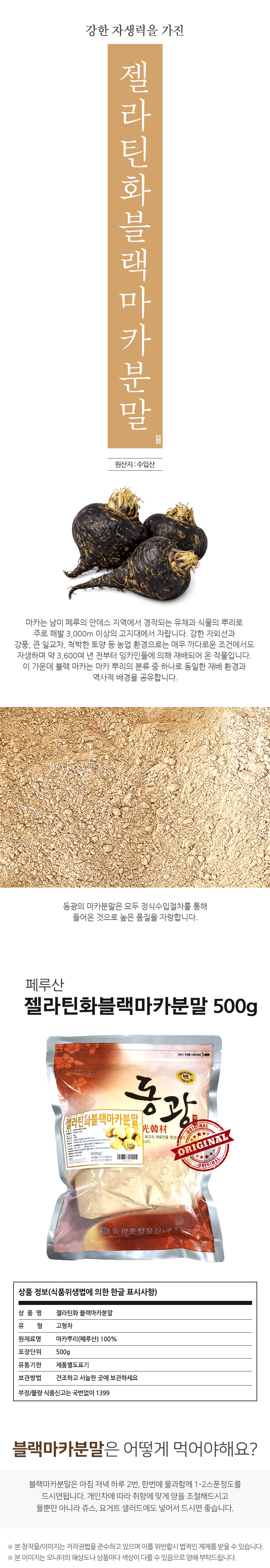 블랙마카의 전분(탄수화물)을 가열 및 가압 처리로 제거하여 주요 유효 성분을 농축시키고 체내 흡수율을 높인 제품으로, 일반 마카보다 영양 효율이 높고 소화 부담이 적은 것이 특징