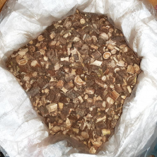 [길이 3~4cm정도로 절단 되어있는, 느릅나무의 뿌리 껍질]회갈색에 코르크층이 있다