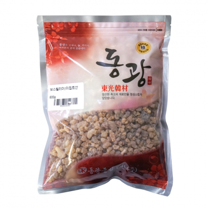 자연스러운 황갈색을 띠는 수지(Resin) 형태의 제품입니다. 유향나무 줄기 또는 가지에 작은 상처를 내어 흘러나오는 진액(수지)을 채취한 뒤 자연 건조한 원물입니다.