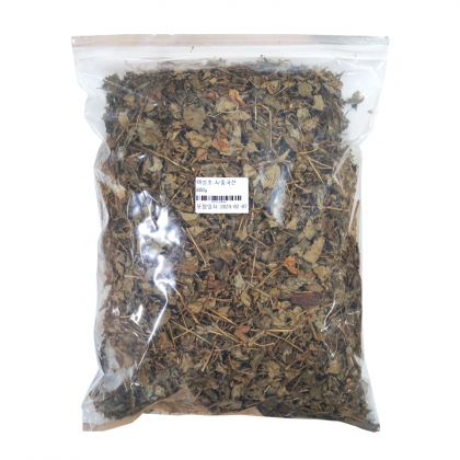 줄기와잎에서 생선비린내가 나는 풀 /절단돼여 있는제품/ 색깔이 녹갈색이고 품질이 떨어짐