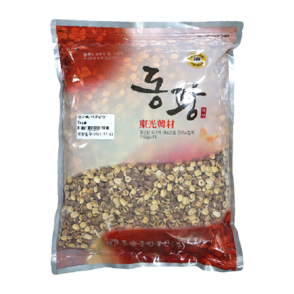 껍질을 안깐 연자육, 볶지 않음, 연심은 대부분 제거 됨, 반 쪼개져 있음