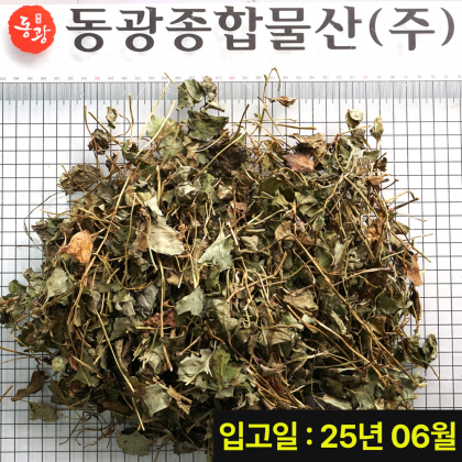 절단돼여 있는제품/ 줄기와잎에서 생선비린내가 나는 풀/잎은 심장모양이고 끝은 뽀족함/고구마잎과메밀잎과 비슷