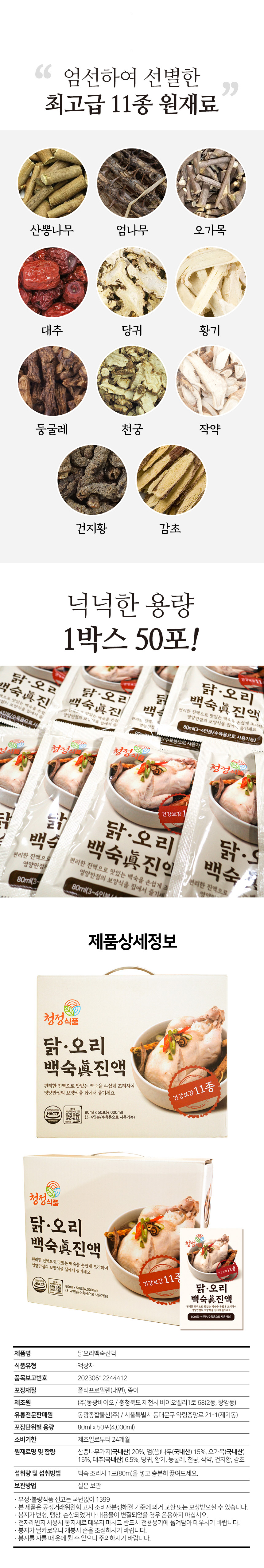 [50개구매시 30,000원 할인]/1포(팩) 제품. 닭오리등 백숙육수내는용/ 1포에 3~4인용분으로 사용가능/ 진액으로 추출고형물이 떠있을수 있음.