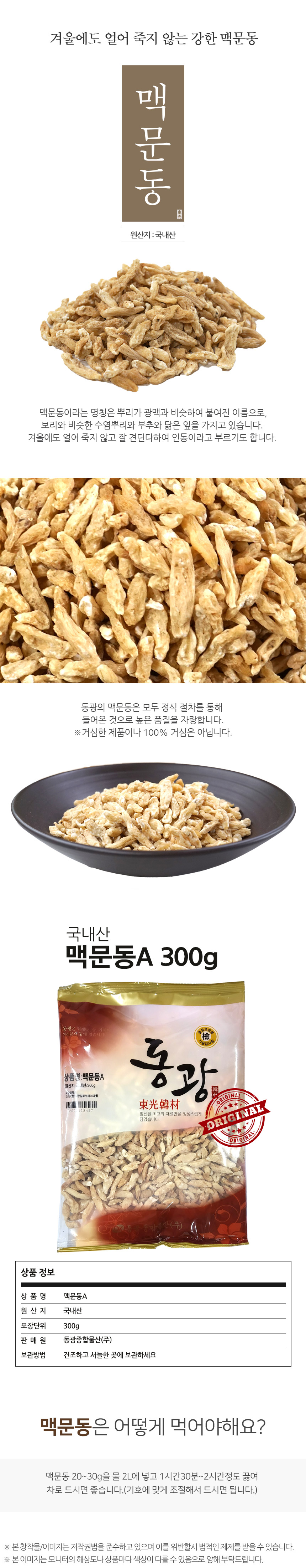 땅속의 수염뿌리에서 군데군데 땅콩처럼생기며 맥문동을따서 세척해 건조/반투명한 담황색중앙에 심을 빼것/거심제품이나 100% 제거된것은 아님