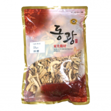 뿌리를 절단함. 기존판매제품은 통짜 이었으나 현재 제품은 편으로 썰어짐. 황갈색 또는 회갈색이고 많은 마디가 있음