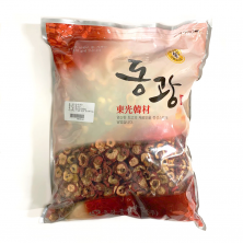 가래떡처럼 엇비슷한 모양으로 잘린상태 (절)/ 거피되어 있는 상태